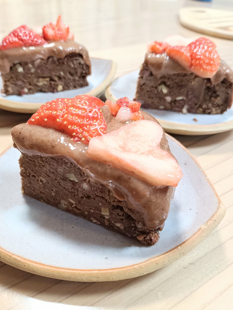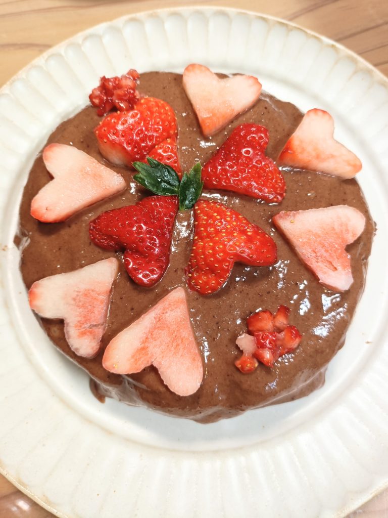 上にかかっているチョコレート風クリームは、高キビ甘酒から作っています。